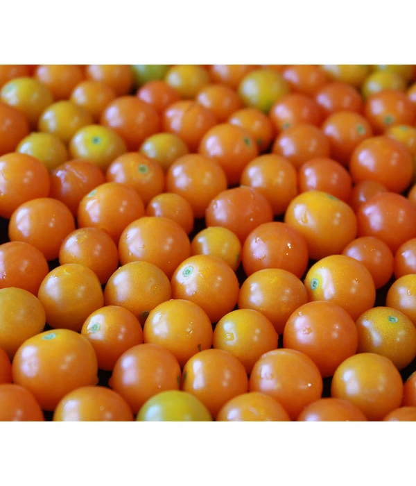 Goldgelb leuchten ab Juni die runden Minis an dem stattlichen Strauch und scheinen Ihnen zuzurufen: “Nasch mich!“ Und wenn Sie dieser freundlichen Einladung folgen, werden Sie von dem süß-fruchtigem Aroma der Cherrytomate ‘Sungold‘ begeistert sein! Außerdem haben die Tomaten eine angenehm dünne Schale, was sie zur idealen Nascherei auch für Kinder macht. Und weil sie außerdem reich an Vitaminen und Mineralien sind, dürfen die Kleinen gerne mehr als eins der gelborangefarbenen “Frucht-Bonbons“ naschen. Doch die Cherrytomate ‘Sungold‘ stellt auch den Gärtner in Ihnen zufrieden. Sie beschenkt Sie mit einer reichen Ernte, die von Juni bis September dauert, so dass Sie kontinuierlich von dem bis 200 cm großen Tomatenstrauch ernten können. Außerdem zeichnet sie eine hohe Resistenz gegen Tomatenmosaikvirus und Fusarium-Welke aus. Probieren Sie gleich diese ausgezeichnete Tomatensorte – Sie werden einen wunderbaren Tomatensommer erleben!