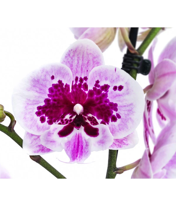 Als hätte ein Maler in seinem Atelier sorgfältig viele kleine Farbtupfer in kräftigem Pink auf zartes Rosé gesetzt, bis ein bezauberndes Motiv entstand, das jetzt die eleganten Blüten der Schmetterlingsorchidee ‘Aladdin‘ schmückt und die Augen aller Orchideen-Liebhaber auf sich lenkt. Diese Phalaenopsis ist wirklich eine aufregende Tropen-Schönheit, die so manche ihrer Konkurrentinnen in den Schatten stellt. Ein exotischer Blütenschmuck für Ihr Zuhause, der außerdem überraschend einfach zu pflegen ist, denn Phalaenopsis gehören zu den wenig anspruchsvollen Orchideensorten. Bereichern Sie mit diesem Blühpflanzen-Klassiker Ihr Zuhause und holen sich die Schmetterlingsorchidee ‘Aladdin‘!