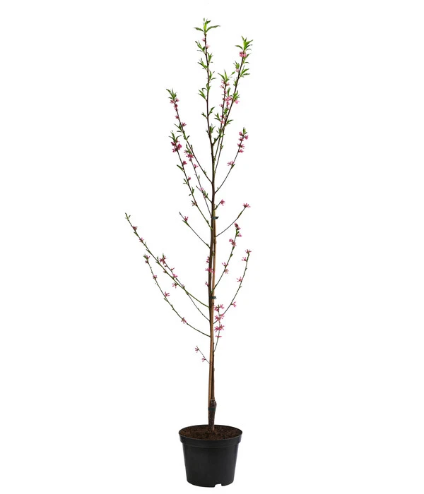 Sie wünschen sich eine Pflanze mit zauberhaften Blüten, die Sie auch noch mit wohlschmeckenden Früchten verwöhnt? Dann sollte die Teller-Nektarine ‚Honey®‘ aus dem Hause Dehner schnell bei Ihnen im Garten einziehen. Mit ihrem halbhohen Wuchs eignet sie sich ideal als Kübelpflanze auf dem Balkon oder auf der Terrasse und wird Ihnen im Frühjahr mit ihrem wunderschönen, reichlichen Blütenschmuck viel Freude bereiten. Ihre Kinder oder Enkel sind sicher begeistert, wenn sie ihre erste zuckersüße Nektarine abpflücken können. Dazu haben sie auch ausgiebig die Möglichkeit, denn die ertragreiche, selbstbefruchtende Sorte verspricht Ihnen eine Erntezeit von Juli bis August.